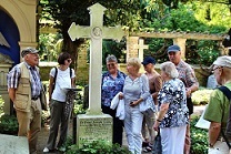 Sie haben uns den alten Friedhof gezeigt. Hier liegen sie nun alle begraben, die alten Baumeister der Gartenarchitektur. Wir ließen es uns nicht nehmen, ein Foto am Grab des berühmten Baumeisters Dr. Peter Lenné aufzunehmen.