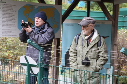 Nachdem Achim die Pinguine gefüttert hat, wird die Aufnahme kontrolliert.