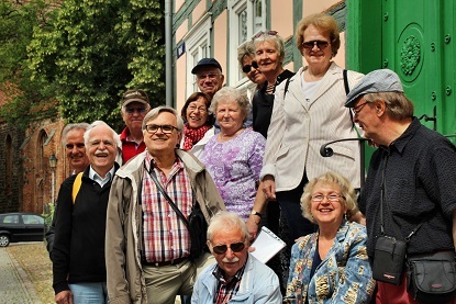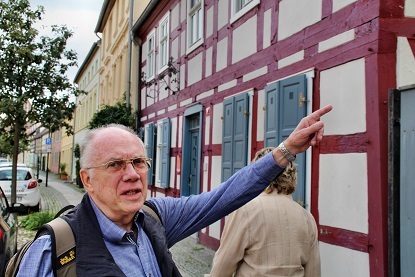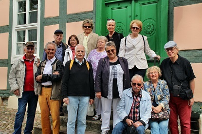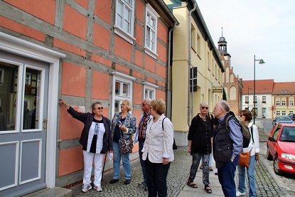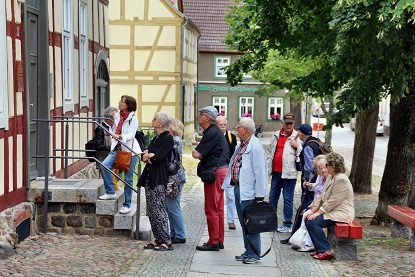 Bei dem Rundgang bestaunen wir die alten Fachwerkhäuser und freuen uns, wie sauber alles hier ist. Es bleibt viel Zeit für Gespräche und natürlich darf ein Gruppenbild nicht fehlen. Eins mit Chris und eins ohne Chris.